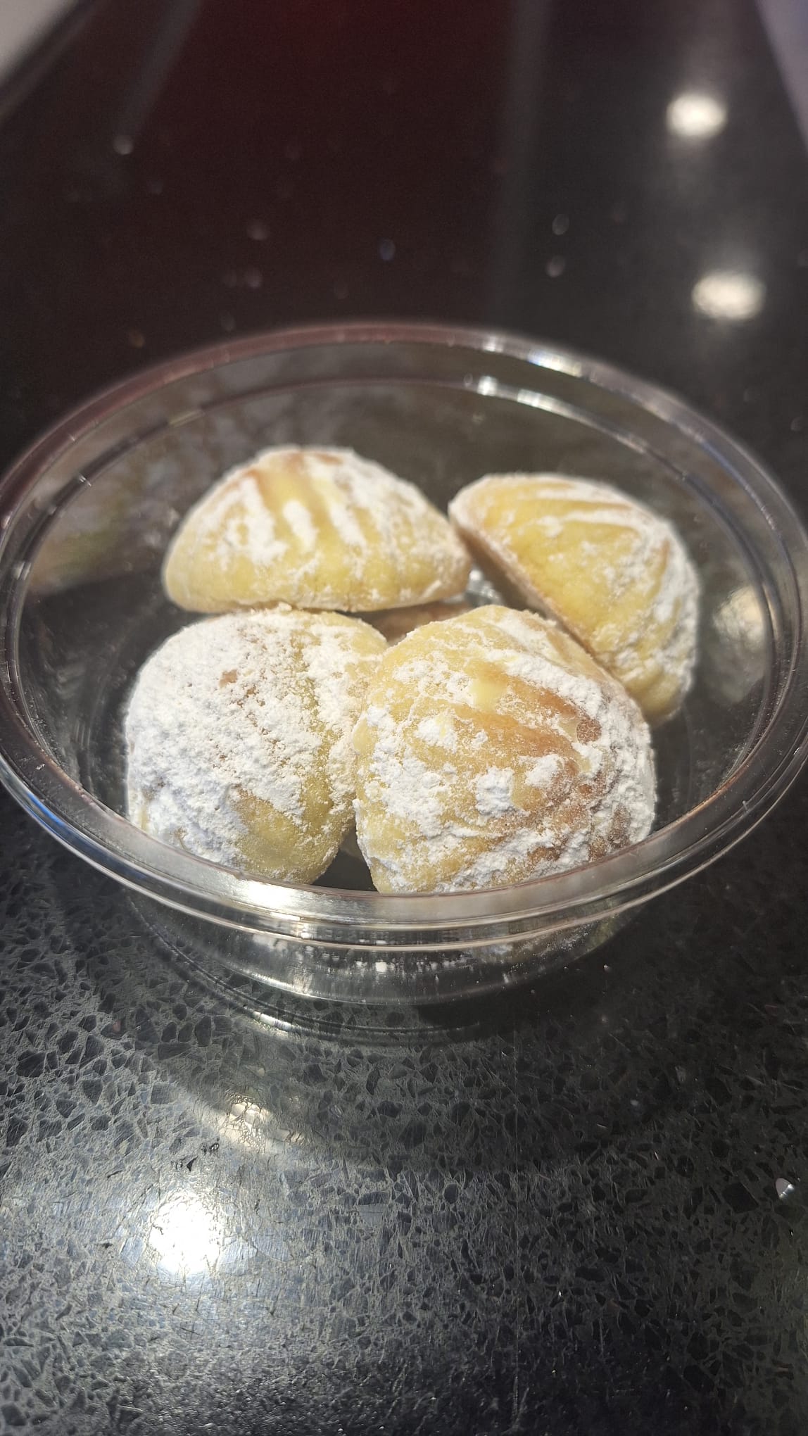 une boite de 5 mini-Maamoul aux Noix traditionnels, de délicieux biscuits au beurre fourrés de noix sucrées, parfumés à l’eau de rose.